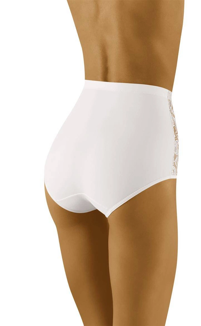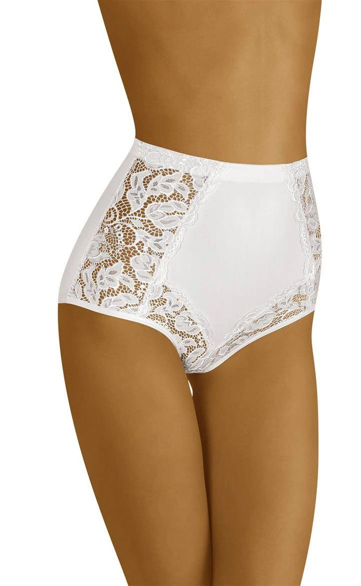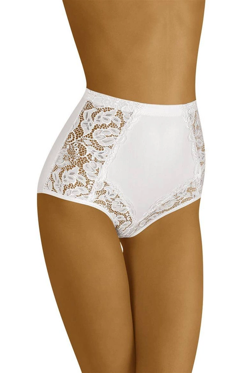 Wyższe, modelujące talię i biodra - Eleganta to bielizna, którą chcemy polecić. Wykonana z komfortowej dzianiny, z wstawkami z pięknej, ażurowej koronki, prezentuje się ślicznie i nienagannie. W pasie od wewnątrz silikonowa wstawka. Skład: 59% poliamid, 41% elastan.