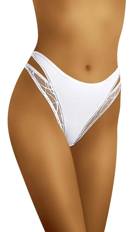 Zmysłowe figi na podwójnych, ozdobnych paskach. Gładkie z przodu i transparentne po bokach. Tworzą efekt 2 w 1. Wyglądają extra właściwie na każdych biodrach. Skład: 83% poliamid, 17% elastan.