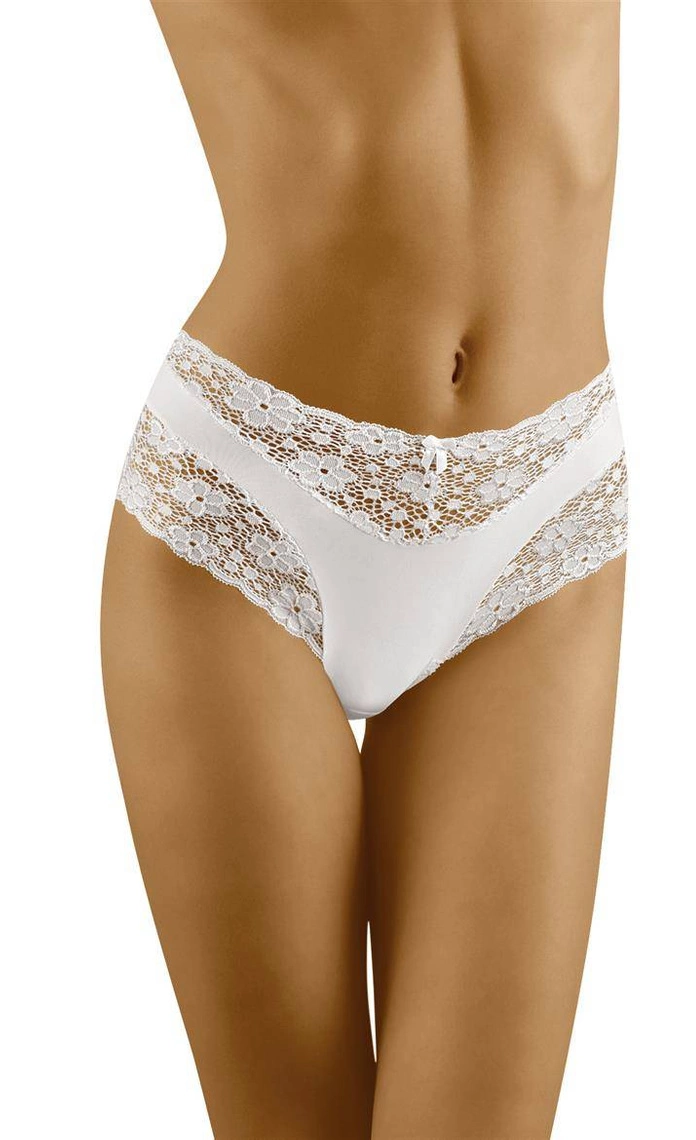 Ciekawe figi, których sekret tkwi w osobliwym połączeniu gładkiej tkaniny oraz ażurowej, elastycznej koronki, subtelnie opinającej okolice bikini oraz talii. Bardzo kobiece i delikatne, będą doskonałe, jeśli pragniesz wygody i kobiecości. Skład: 83% poliamid, 17% elastan.