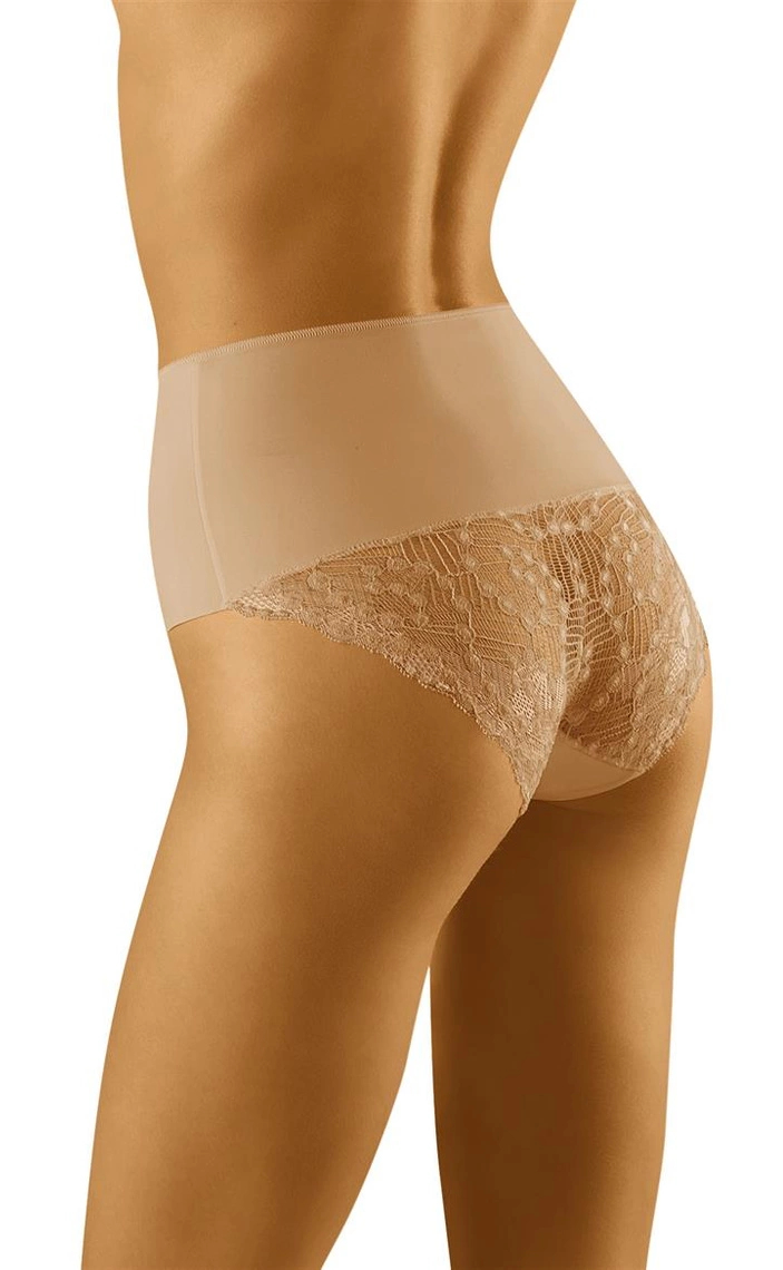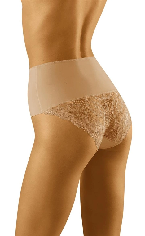 Promessa to subtelnie modelujące sylwetkę, gładkie figi cięte laserowo, o miękkich, płaskich szwach. To bielizna, którą z powodzeniem możesz założyć na co dzień. Idealnie wpasują się pod ubranie, a przy okazji są bardzo wygodne. Krój wyższy, pośladki zdobione delikatną koronką. Skład: 58% poliamid, 42% elastan.