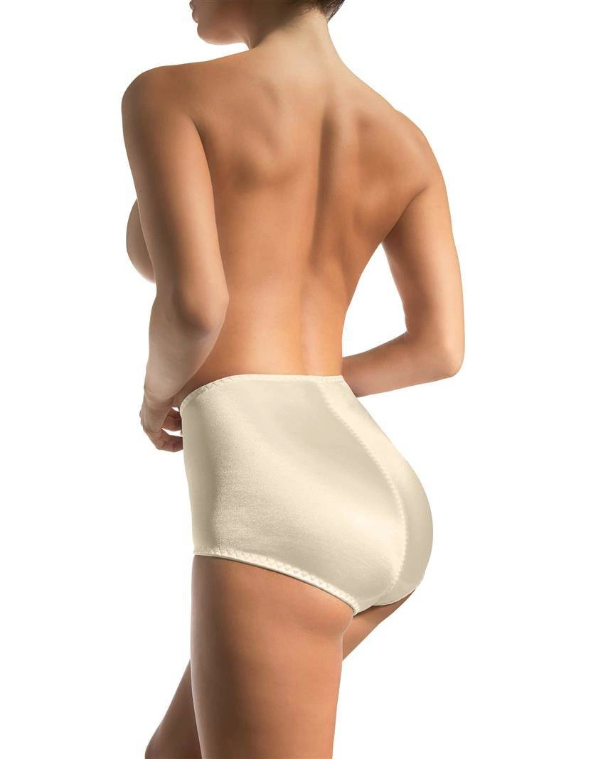 Lekko perłowe, modelujące figi damskie, które skupiają się na poprawie linii brzucha. Wyższy stan do okolic pępka, w pasie elastyczna taśma, która zapewnia optymalne dopasowanie. Skład: 80% poliamid, 20% elastan.