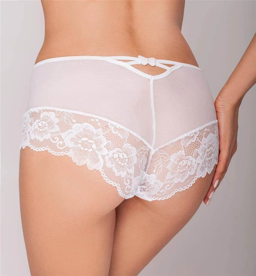 Szczypta finezji - tiulowe figi z pięknym, koronkowym obszyciem. Lekko prześwitujące, zmysłowe i kobiece. Skład: 92% poliester, 8% elastan.