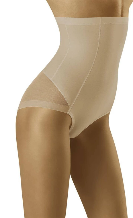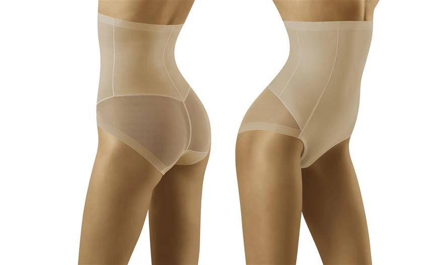 Gładkie, modelujące sylwetkę, wysokie figi z elementem prześwitu. Wyposażone w delikatne, silikonowe wzmocnienie w górnej części, dzięki któremu figi nie zsuwają się z ciała. Fajnym pomysłem są prześwity po bokach bioder (i na pośladkach) - przełamują utarte standardy, pokazują, że bielizna, która potrafi wysmuklić i poprawić linię ciała może być także kobieca, delikatna i nieco sexy. Polecamy! Skład: 58% poliamid, 42% elastan.