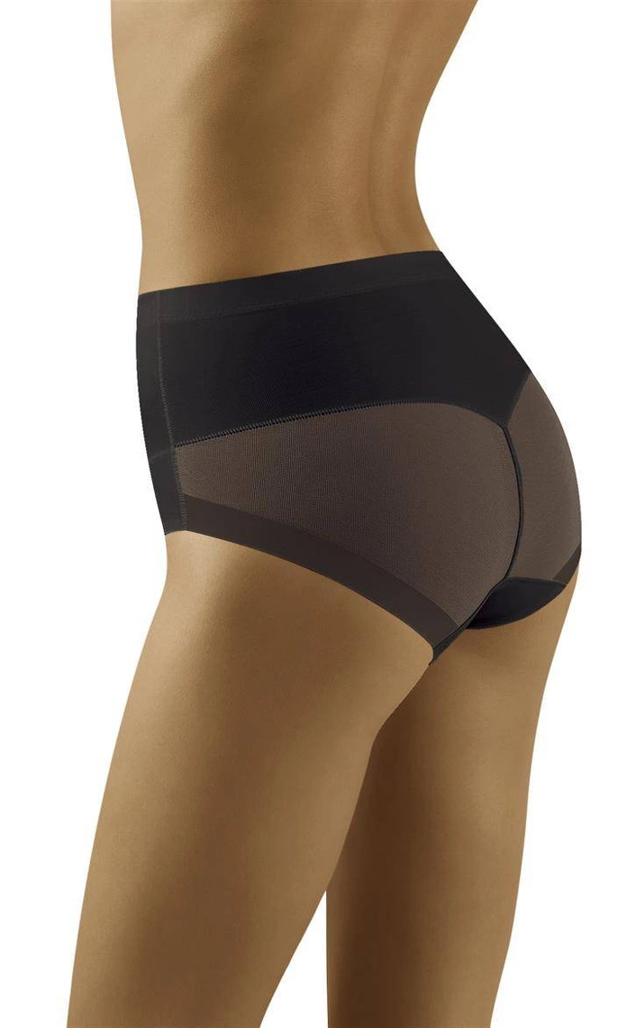 Rewelacyjne figi z wyższym stanem, które modelują strefę brzucha i bioder. Specjalna dzianina o właściwościch ściągających, wygłada ciało i wpływa na poprawę kształtu sylwetki. Tył z siateczką, która pozwala unieść pośladki. Figi są wygodne i (pomimo swej ukrytej funkcji) bardzo komfortowe w noszeniu. Skład: 58% poliamid, 42% elastan.