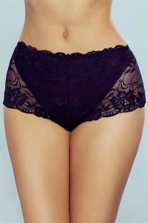 Eleganckie figi lekko korygujące dolne partie brzucha. Obficie pokryte piękną, transparentną koronką, dzięki której bielizna prezentuje się delikatnie i kobieco. Skład: 85% poliamid, 15% elastan.