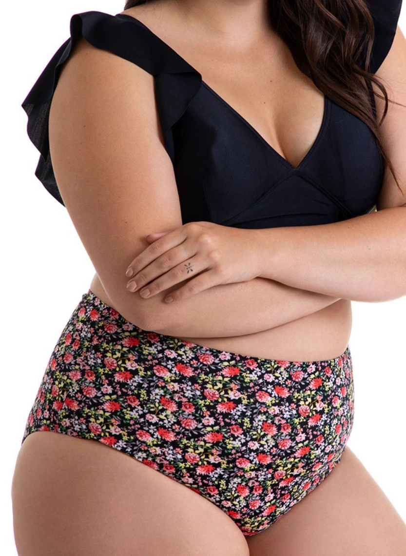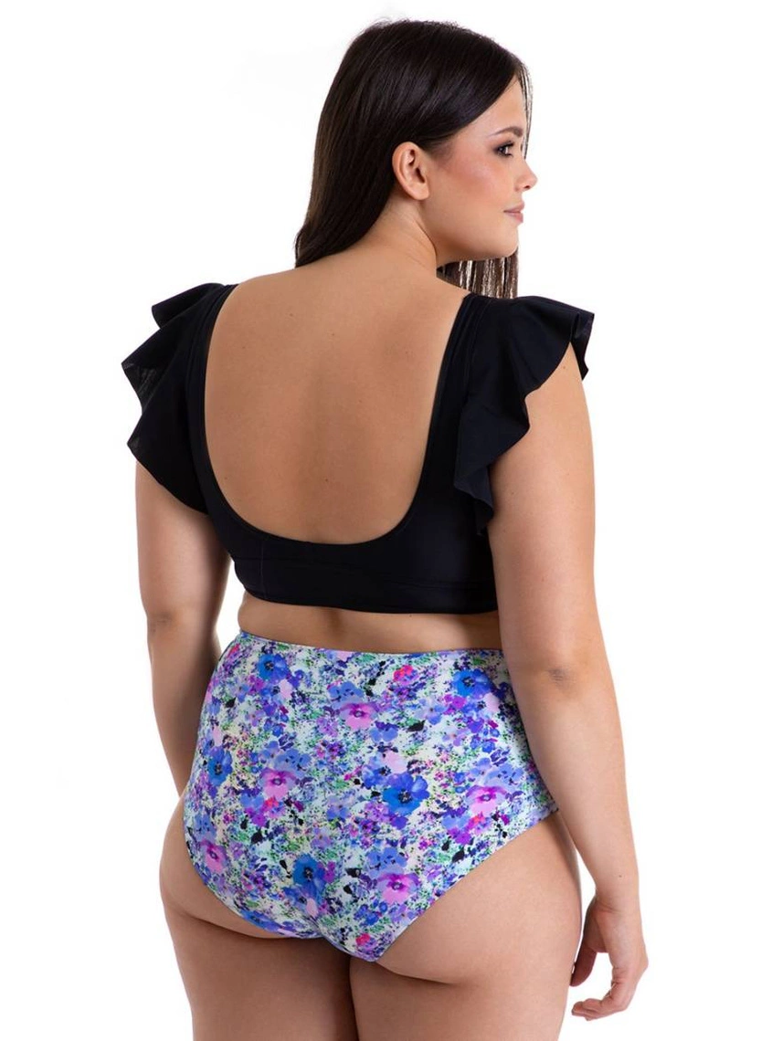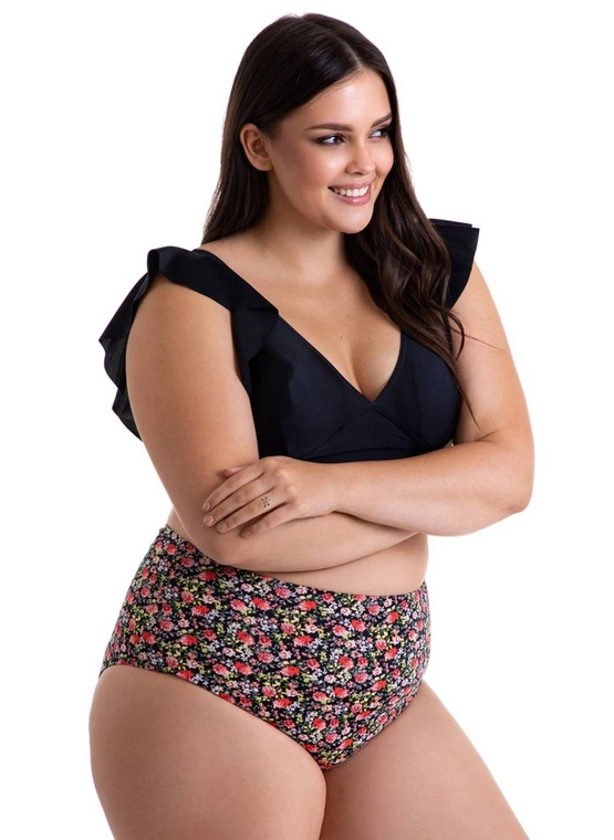 - biustonosz przyozdobiony falbanami, które tworzą zwiewne rękawki