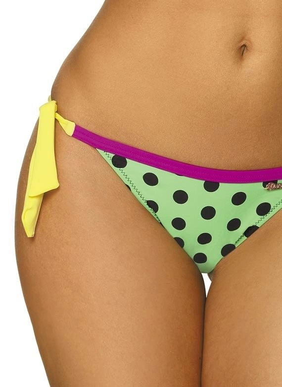 Śliczny, mega kobiecy, dwuczęściowy kostium kąpielowy w groszki, w kolorystyce, jak z owocowego sorbetu.