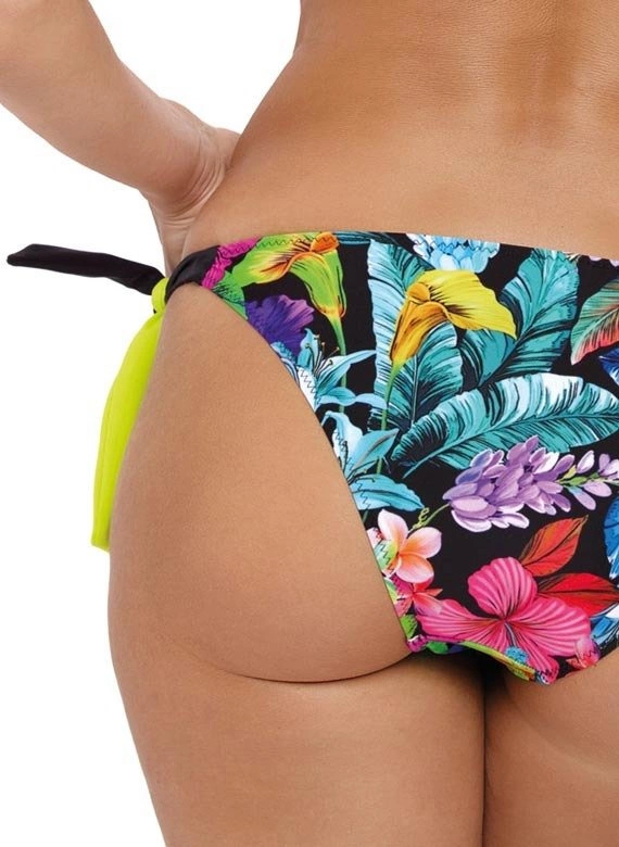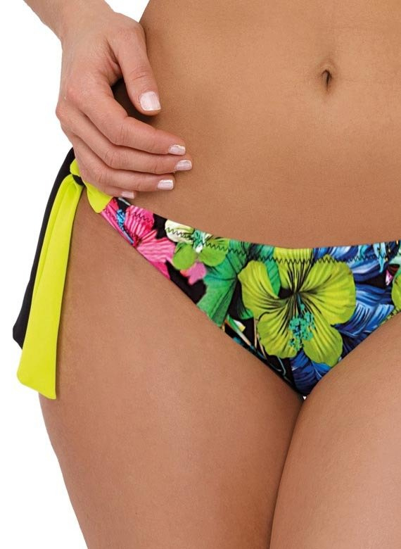 Na szyi, na plecach, ukośnie pod biustem, a może na kokardkę pod piersiami? Zaskocz wszystkich! Załóż kostium, który może się zmieniać. Biustonosz w seksownej konstrukcji, z usztywnianymi miskami, z fiszbinami i poduszkami push-up - od razu przybliża ku sobie, unosi i powiększa piersi. Push-up występuje w każdym rozmiarze kostiumu i nie jest wyciągany z modelu. Obwód zapinany na plecach. Słodkie figi wykonane z kwiecistej tkaniny, wygodnie wiążą się bo bokach bioder. Zamów go i niech trwa wakacyjna zabawa! Skład: 80% poliamid, 20% elastan.