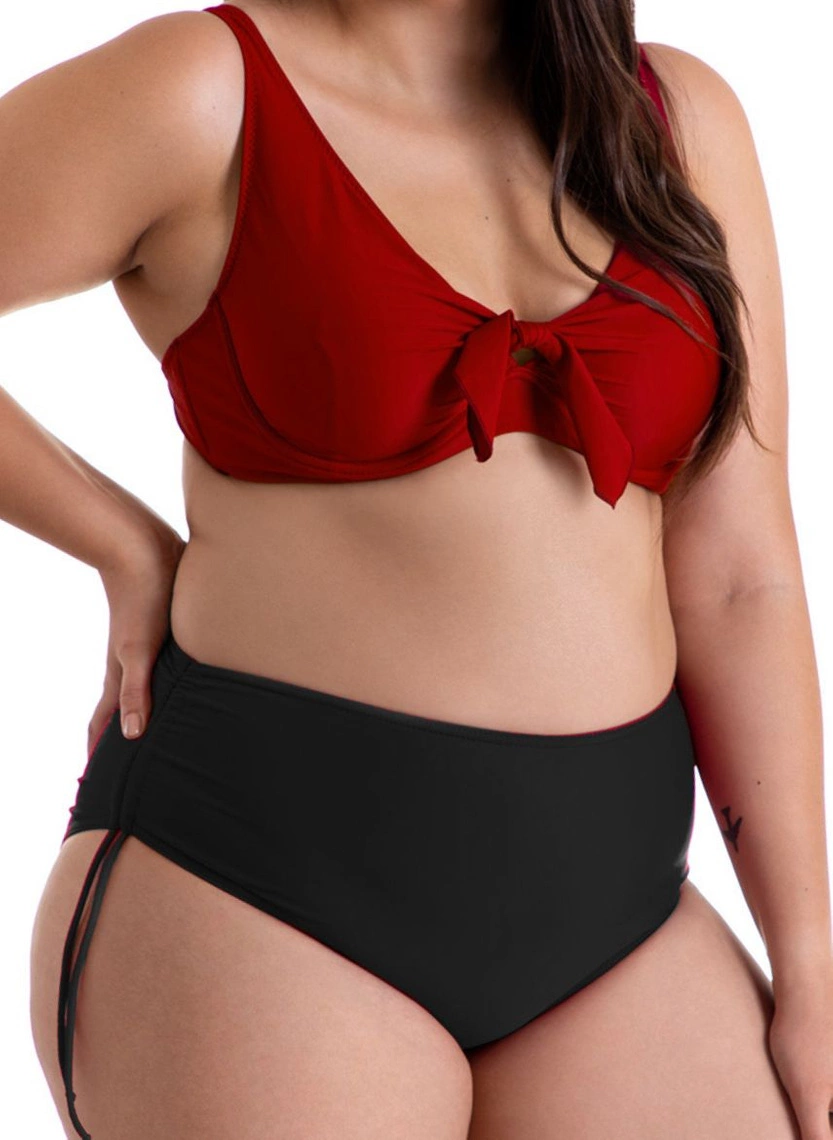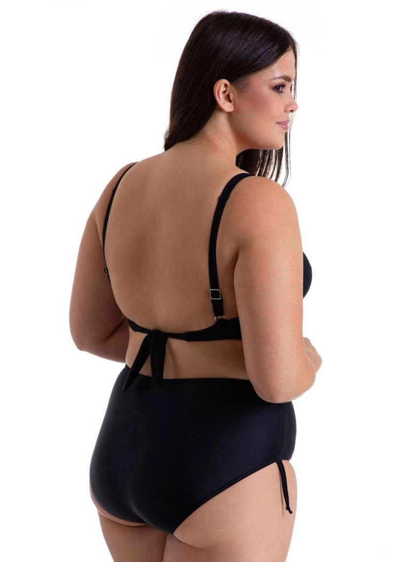 Kostium Matylda - zaprojektowany z myślą o Paniach szukających stroju z kategorii Plus Size - zaskoczy Cię swoją wygodą. Pełne miseczki na miękkiej konstrukcji zostały umocnione fiszbinami. Dzięki temu biustonosz będzie stabilny nawet w przypadku dużych piersi. Obwód jest wiązany na plecach, zatem bez trudu dopasujesz go do swoich potrzeb. Ramiączka są dość szerokie i można je regulować. Ozdobna kokarda na wysokości mostka dodaje całości uroku oraz pozwoli regulować szerokość dekoltu.