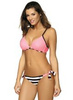 Śliczny, dwuczęściowy kostium w pięknym, plażowym kolorze. Gładki biustonosz i figi typu brazyliany, w seksowne paseczki.