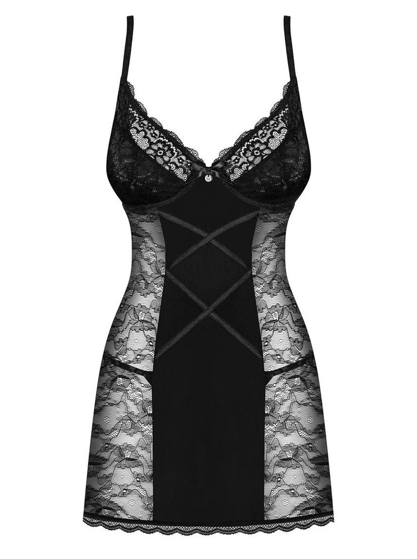 Czarująca kompozycja głębokiej czerni i delikatnej, zmysłowej koronki - poznaj najnowszy projekt Laurise marki Obsessive. Koszulka posiada gładki przód i delikatne, lekko prześwitujące boki dzięki czemu sylwetka wygląda na wyszczuploną i niesamowicie zgrabną. Góra profilowana, świetnie radzi sobie również z większym biustem, na fiszbinach. Dół luźny, zwiewny. Tył wygodnie zapinany, z dekoltem. Skład: 90% poliamid, 10% elastan.