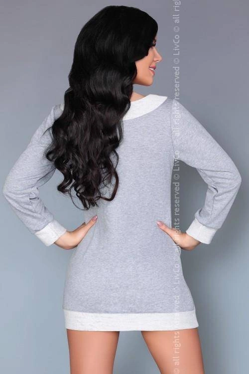 Koszulka nocna i idealny homewear, który wygląda kobieco i sexy. Wykonana z "konkretnej", nieco grubszej niż zazwyczaj dzianiny, z długim rękawem i kieszeniami po bokach. Od razu wpada w oko. Świetny dekolt w kształcie szpica, zdobiony kontrastową, jasną lamówką. Skład: 75% poliester, 25% bawełna.