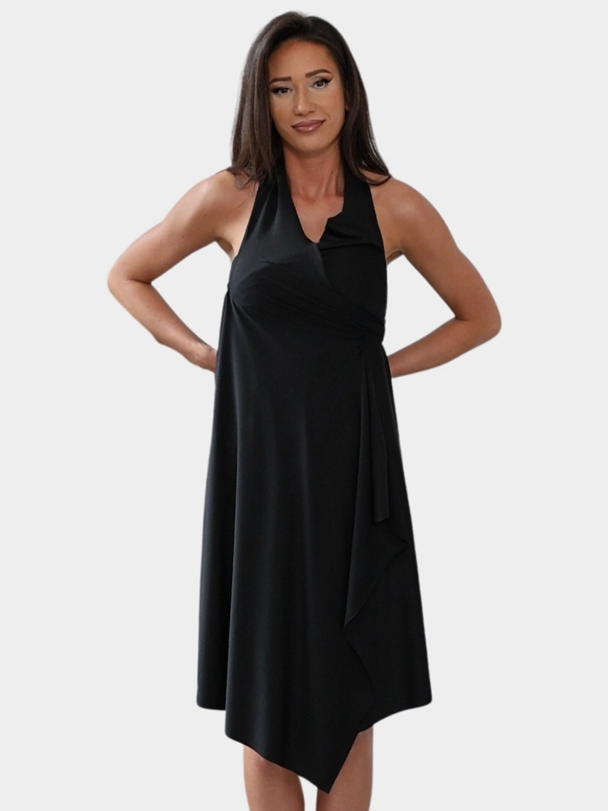 3. Asymetryczna sukienka z z kopertowym dekoltem.