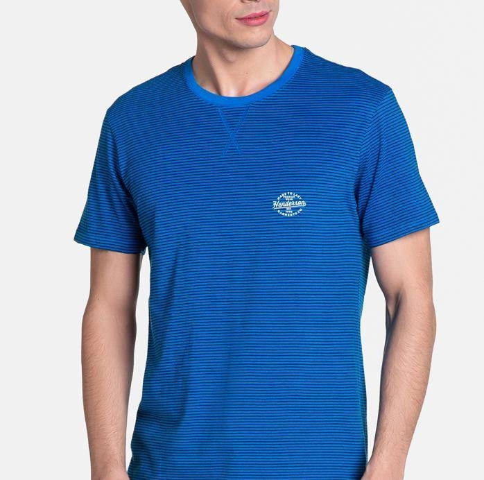 Miks kolorów na bazie niebieskich tonów to uniwersalna propozycja, w której dobrze poczuje się właściwie każdy mężczyzna. Drake - najnowsza piżama męska marki Henderson stawia na wygodę i sprawdzone barwy. Góra w ładnym odcieniu niebieskiego, w paski, z krótkim rękawem. Spodenki do okolic kolan. Skład: 100% bawełna.