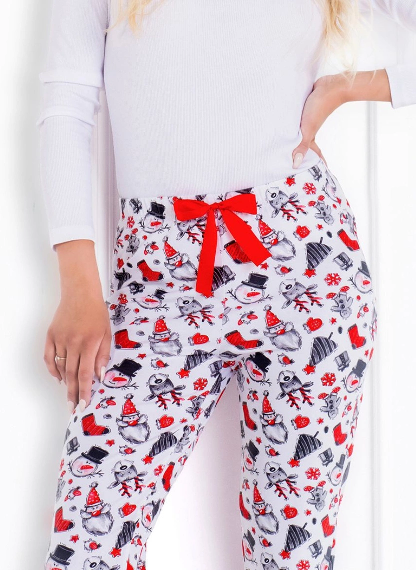Niech świąteczne chwile będą jeszcze piękniejsze! Załóż wieczorem tą słodką, dwuczęściową piżamę Magic Moments, w której poczujesz się niesamowicie kobieco. Wykonana z uszlachetnionej bawełny jest miękka, delikatna i niesamowicie wygodna. Górę tworzy elastyczna, bawełniana bluzka z długim rękawem wykonana z bawełnianego prążka konfekcyjnego, dzięki temu poczujesz się w niej niesamowicie stylowo, zaś dół to zgrabne, długie spodnie w uroczy, wpadający w oko świąteczny wzór. Czerwono-szara kolorystyka idealnie komponuje się tu z delikatną bielą. W pasie czerwona, satynowa kokardka. Wysoka jakość. Produkt polskiej marki Momenti Per Me. Skład: bluzka 95% bawełna, 5% elastan, spodnie 92% bawełna, 8% elastan.
