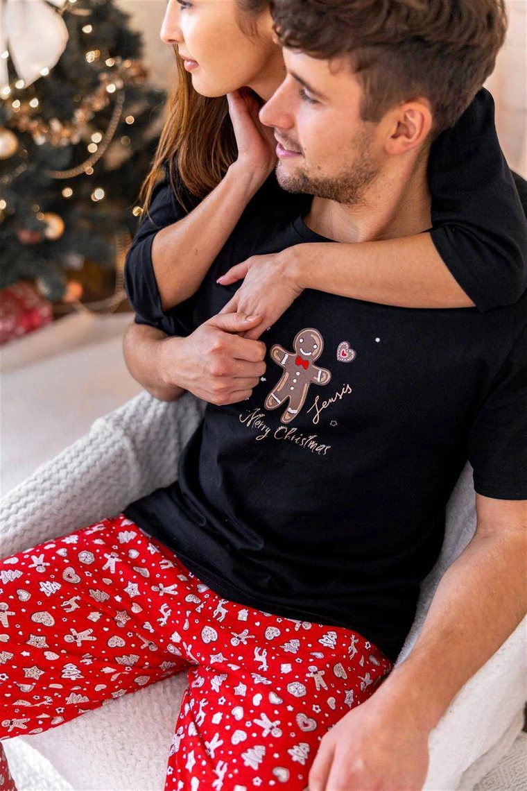 Idealny prezent? - męska piżama w świątecznej stylistyce! Mike to bawełniana, czerwono-czarna propozycja marki Sensis, w której każdy pan poczuje magię świąt. T-shirt czarny z piernikowym ludzikiem na środku. Spodnie czerwone, wzorzyste, o prostych, długich nogawkach. Skład: 100% bawełna.