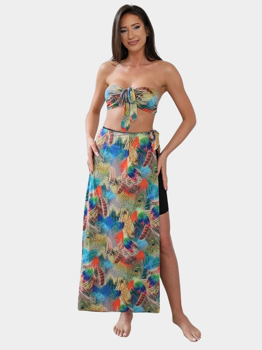 - Wersje kolorystyczne: zielony w palmy, panterka, czarno-biały wzór, wielokolorowy w pawie pióra, czarny, różowy.