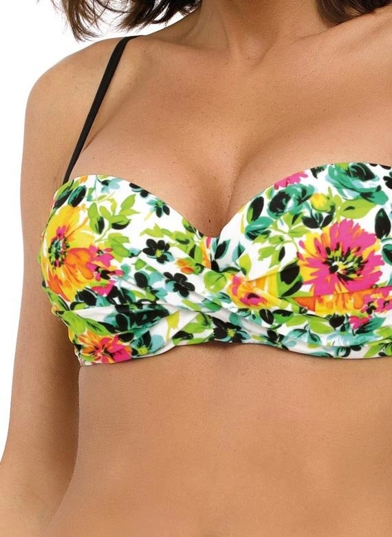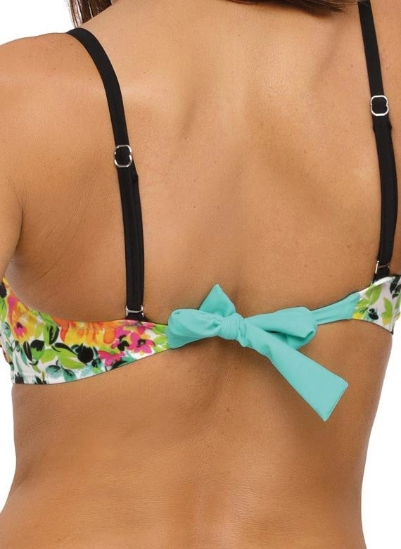 Kwiecista góra prezentuje się stylowo i romantycznie. Dzięki dobrze wyprofilowanym miseczkom szybko i sprawnie zbierzesz i uniesiesz biust, dodatkowo optycznie go powiększając. Kostium zawiera wypełnienie push-up, które pozwala powiększyć piersi o ponad rozmiar, z zachowaniem pięknego, naturalnego efektu (wypełnienie push-up występuje w każdym rozmiarze kostiumu i nie jest wyjmowane z modelu). Kostium posiada wygodnie wiązany na plecach obwód oraz ramiączka z możliwością całkowitego wypięcia z modelu. Figi z wiązaniami po bokach, zakończone zalotnymi frędzlami - dzięki tym wiązaniom z pewnością dopasujesz rozmiar majteczek do swoich potrzeb. Włoska tkanina wysokiej jakości. Skład: 80% poliamid, 20% elastan.