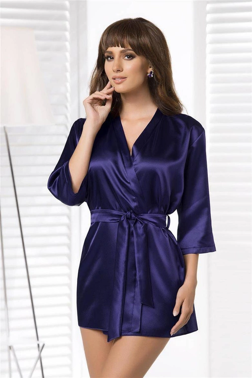 Piękny, luksusowy, gładki szlafrok damski, wykonany z włoskiej satyny najwyższej jakości. Ślicznie zdobi ciało, podkreśla kobiecą zmysłowość, prezentuje ją w bardzo eleganckim wydaniu. Jest ponadczasowy, idealny bez względu na sezon. Cudowny kolor. W pasie wiązanie, które akcentuje talię. Modne rękawy typu 3/4. Renomowana marka. Wspaniała propozycja na prezent dla bliskiej osoby. Skład: 100% poliester.