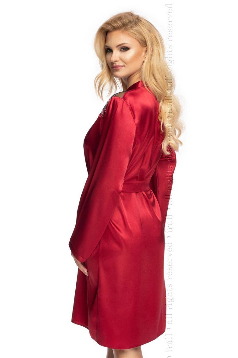 Elegancki szlafrok wykonany z pięknej satyny o luksusowym, perłowym blasku. Z elementami koronki na ramionach. W niesamowitym kolorze. Długie klasyczne rękawy i zgrabny pasek w talii pozwolą Ci stworzyć look wart grzechu. Najwyższa jakość. Skład: 99% poliester, 1% poliamid.